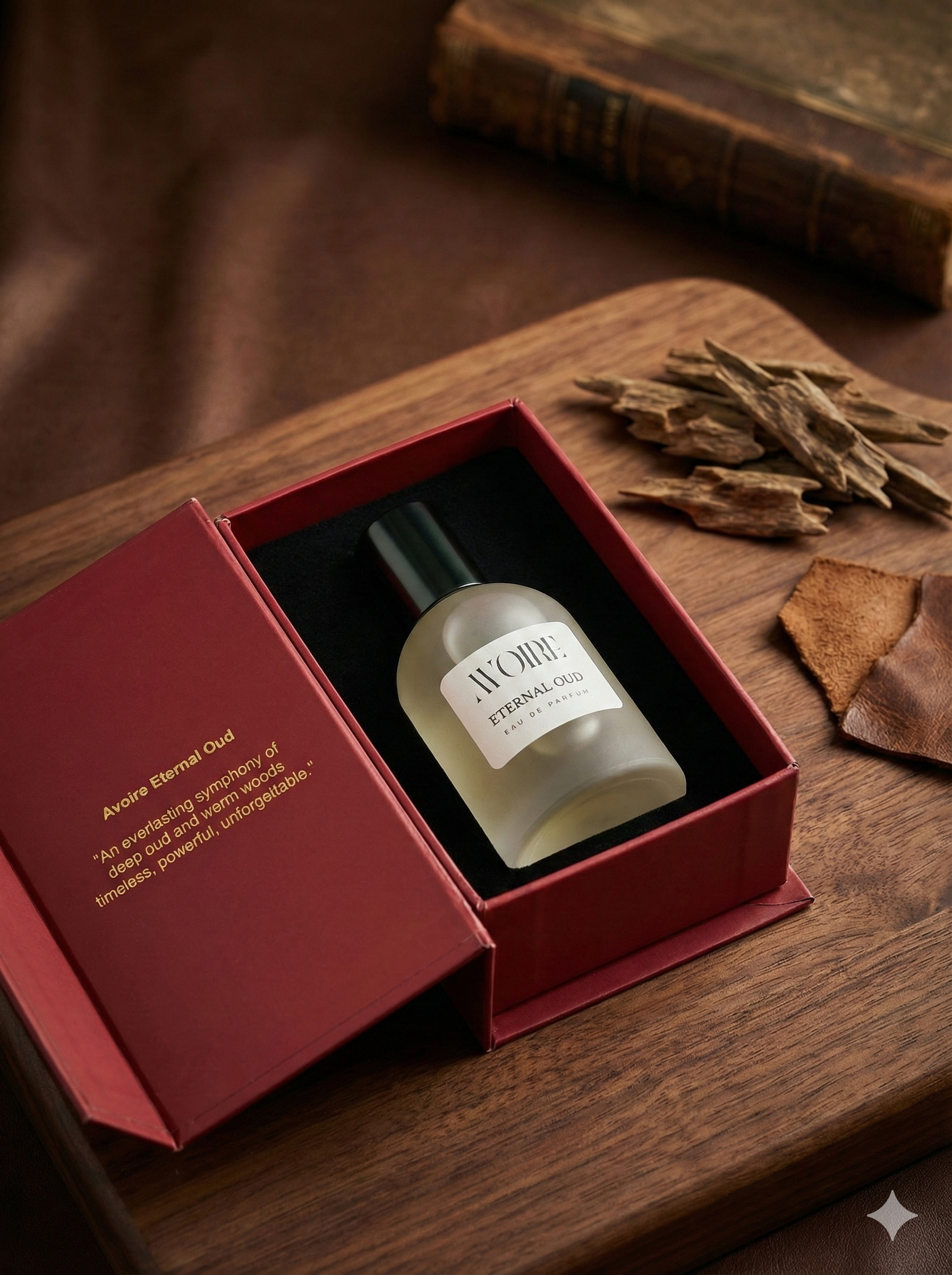 Indulge in the timeless sophistication of Avoire Eternal Oud. This luxurious Eau de Parfum centers around the deep, resonant warmth of precious oud wood, creating an opulent fragrance that captivates the senses. Its rich and long lasting aroma offers an aura of mystery and refined elegance, perfect for making a powerful statement. Housed in a sleek frosted glass vessel, it is modern luxury designed for the discerning individual.